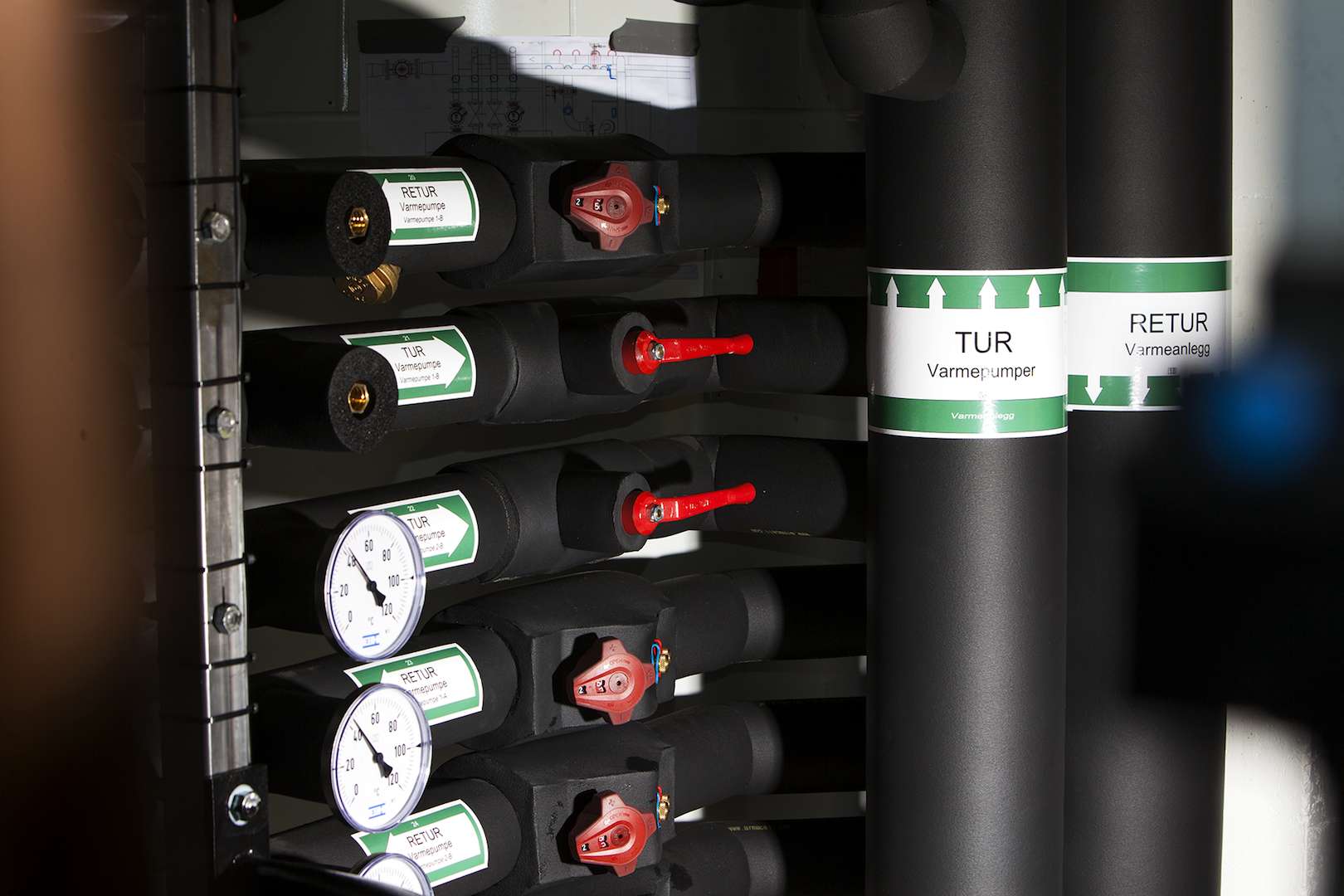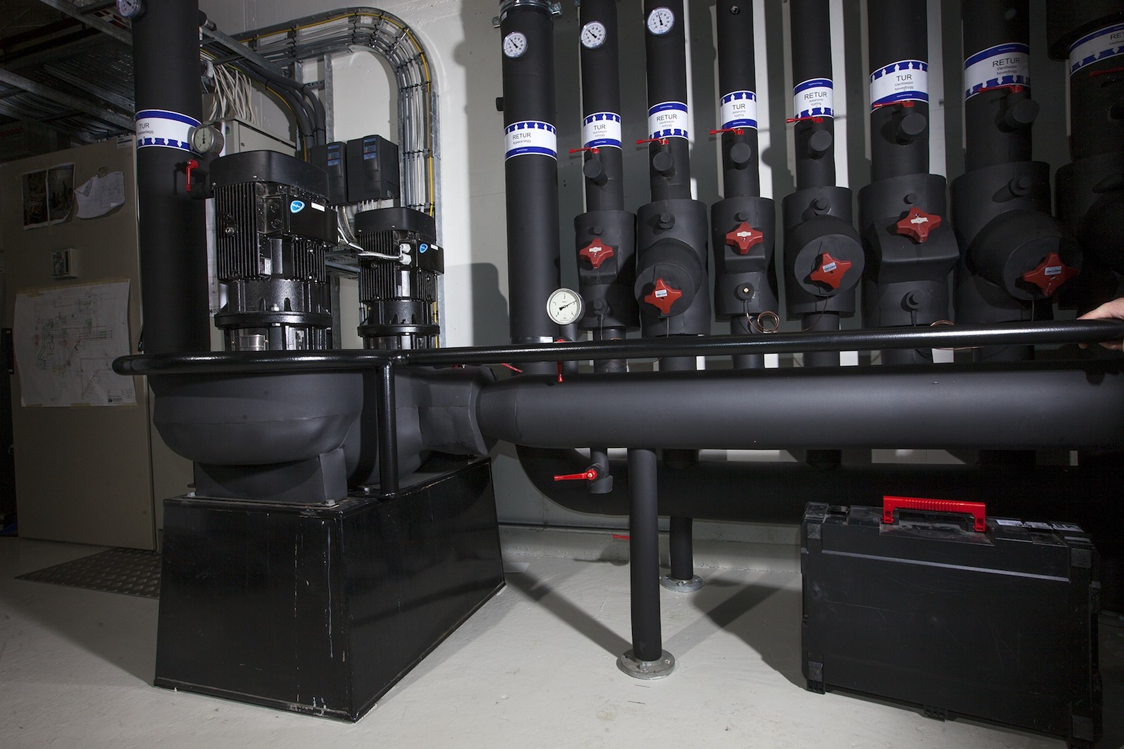 Totalombygging av varme og kjøleanlegg i teknisk rom.